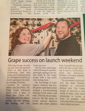 As well as running the wine bar we have also been busy writing articles for local publications. In this section you can read our most recent articles as well as stuff that has been written about The Grape Escape.